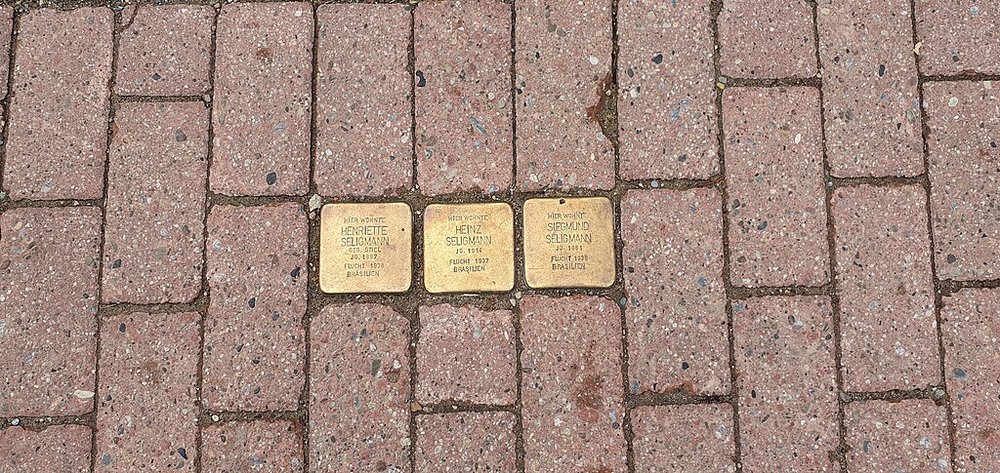 Foto: Die Stolpersteine für Henriette, Heinz und Siegmund Seligmann nach Wiederverlegung im September 2025 in Ronnenberg.